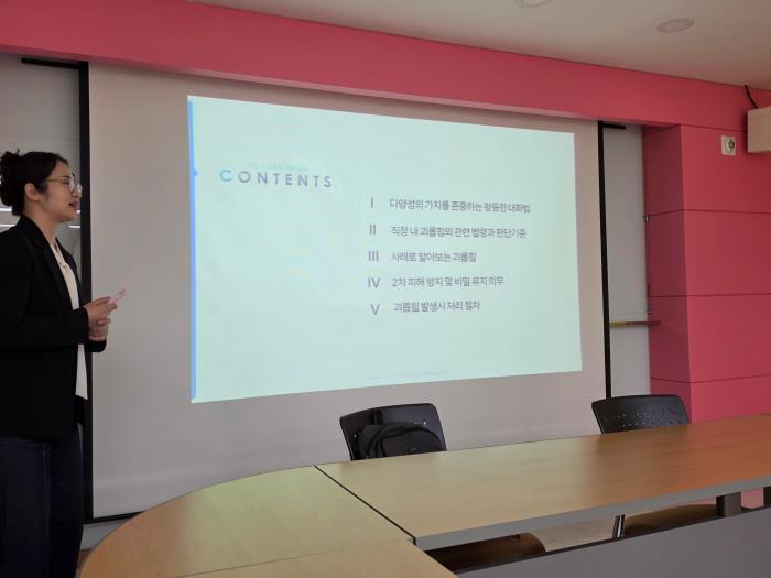전 직원을 대상으로 직장 내 성희롱·괴롭힘 예방 교육(2시간)을 진행했습니다.