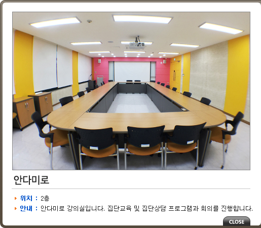 | 강의실2 | 안다미로 | 담은 것이 그 그릇에 넘치도록 많이 배운다는 뜻 | ||