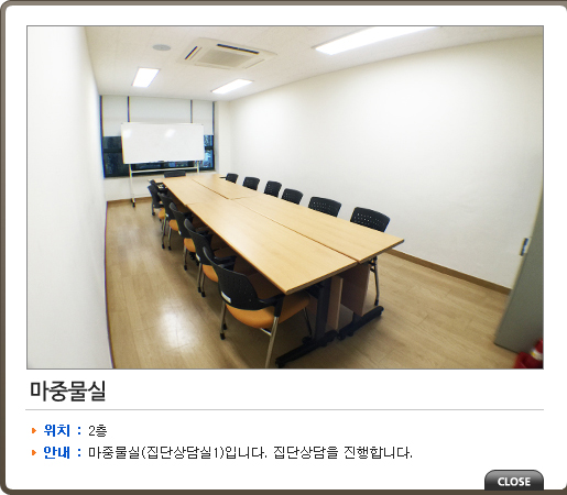 | 개인상담실2 | 도란도란방 | 나직한 목소리로 서로 정답게 이야기를 주고받는 소리를 나타내는 말 | ||